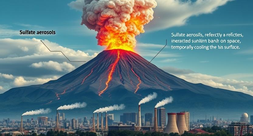 • Sulfur dioxide reacts with water vapor to form sulfate aerosols, leading to a cooling effect